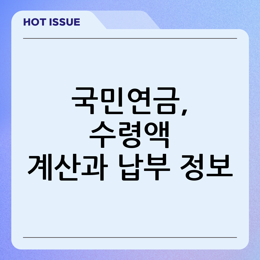 Q: 국민연금 수령액은 어떻게 계산되나요? A: 국민연금 수령액은 가입 기간, 납부한 보험료, 전체 가입자의 평균 소득 등을 고려하여 계산됩니다.