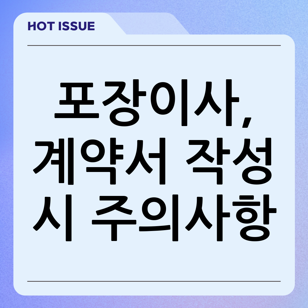 Q: 포장이사 계약 시 주의해야 할 사항은 무엇인가요? A: 계약서 내용을 꼼꼼히 확인하고, 추가 요금 발생 조건, 피해 보상 규정, 계약 해지 조건 등을 명확히 확인해야 합니다.