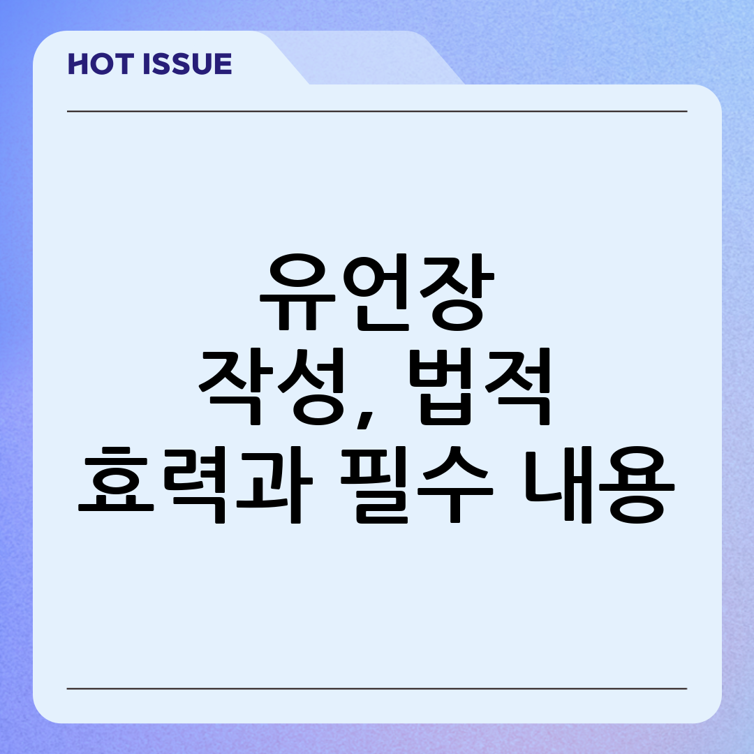 - 법적 요건 준수: 유언의 종류에 따라 법적 요건이 다르므로, 각 요건을 정확하게 준수해야 합니다. 법적 요건을 준수하지 않으면 유언장이 무효가 될 수 있습니다.
