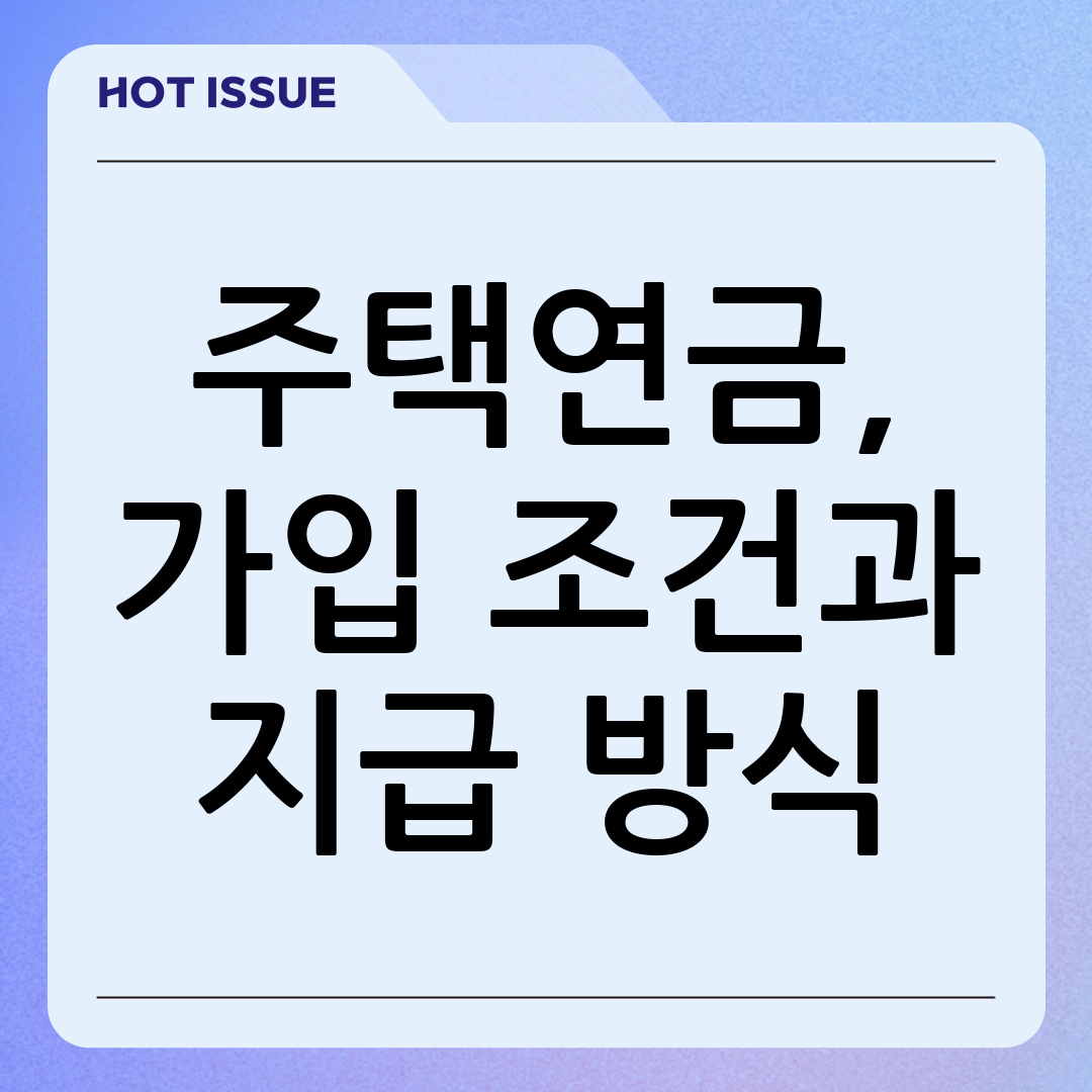 주택연금 가입 조건은 크게 연령, 주택, 대상 요건으로 나눌 수 있습니다. 각 요건을 충족해야 주택연금 가입이 가능하며, 가입 조건을 꼼꼼히 확인하여 주택연금을 효율적으로 활용할 수 있도록 준비해야 합니다.