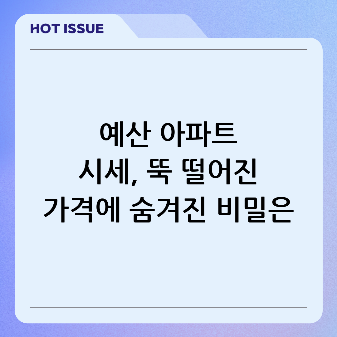 예산 아파트 시세, 뚝 떨어진 가격에 숨겨진 비밀은?